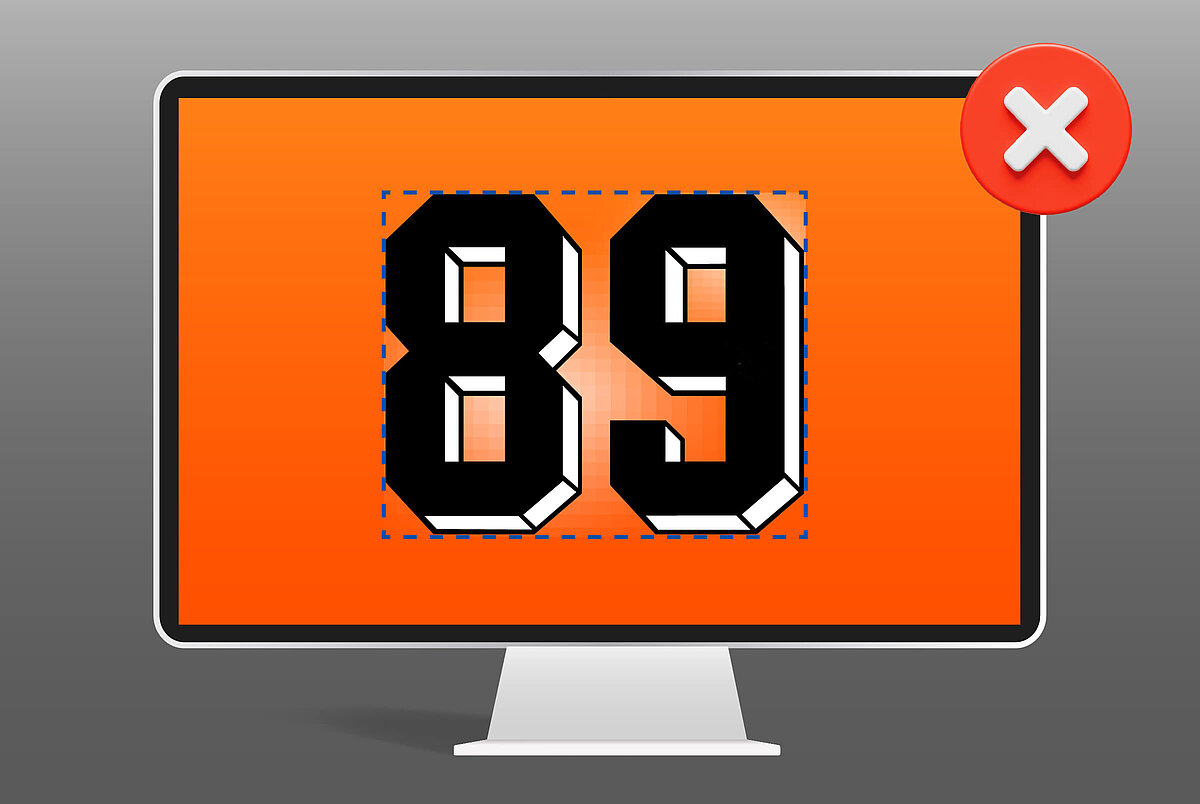 Unscharfe Linien oder feine Linien als Halbraster können von der Folie nicht vollständig auf das Textil übertragen werden. Verwende deshalb Volltonfarben, PUR schwarz oder PUR weiß. Zudem ist es wichtig, beim Motiv auf eine hohe Randschärfe zu achten.