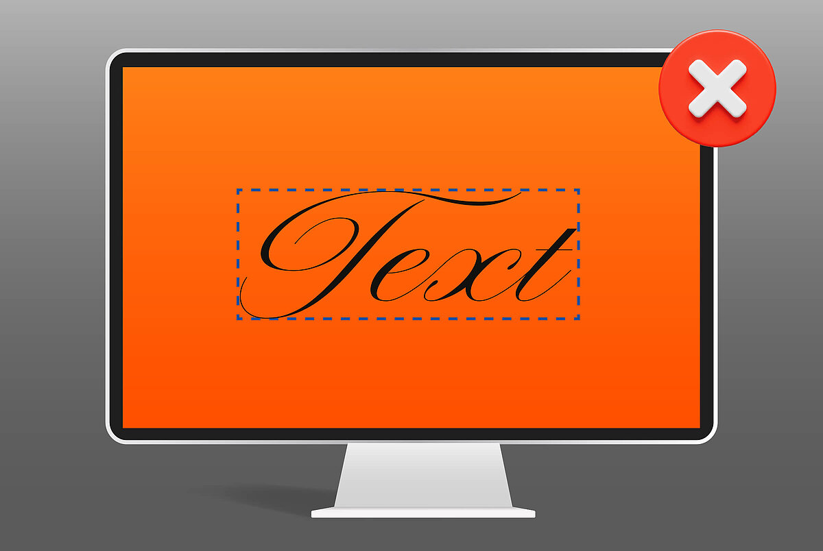 Nicht nur bei den Motiven selbst sollten feine Linien vermieden werden, auch bei den Schrifttypen gilt diese Regel. Haarstriche unter 1 mm weisen die selben Probleme auf und können insbesondere bei Schriftarten mit unterschiedlicher Strichstärke auftreten.